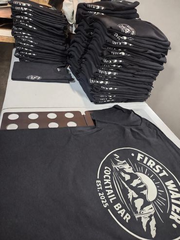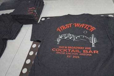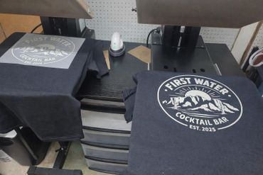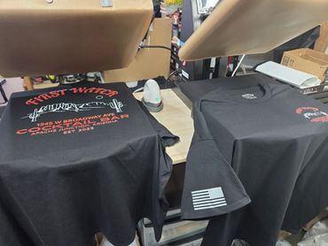 Designs are printed on film then heat pressed onto apparel. Can print any design on your most commonly used fabrics.